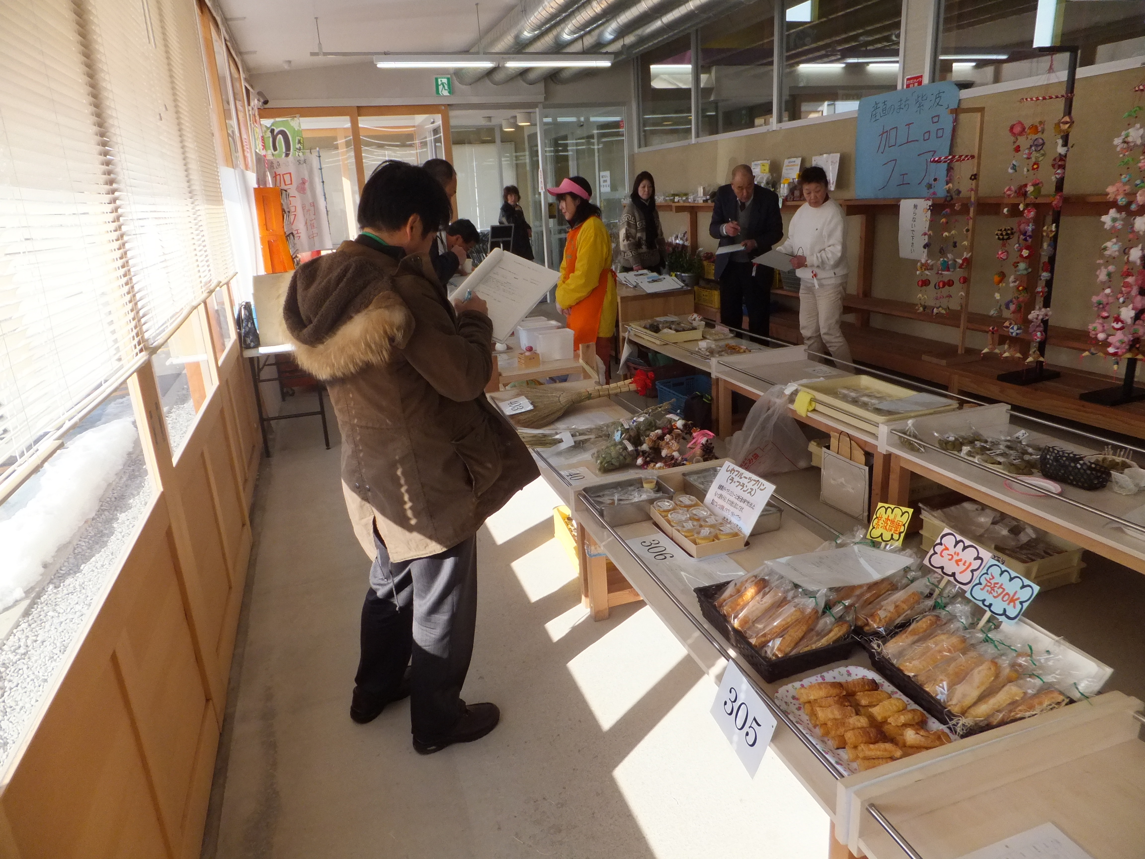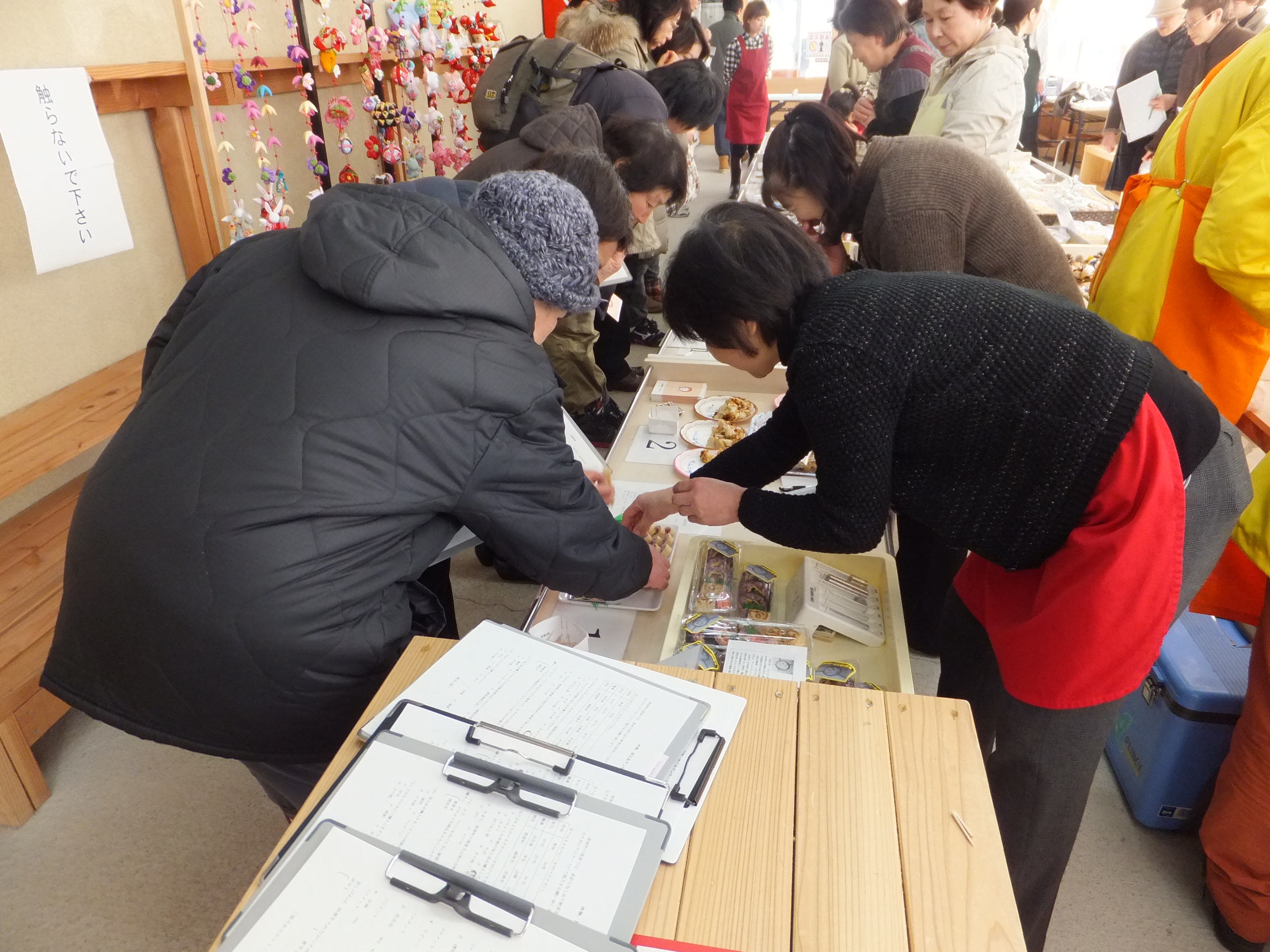 紫波の産直の6次産業をPRするため、第2回産直のまち「紫波」加工品フェアを開催しました。町内産直組合員がつくる加工品の展示及び販売を行いました。また、惣菜、もち・だんご、漬物、スイーツ、民芸品、企画の6部門にてコンクールを行いました。会場にいらした先着25名様には審査に参加して下さいました。