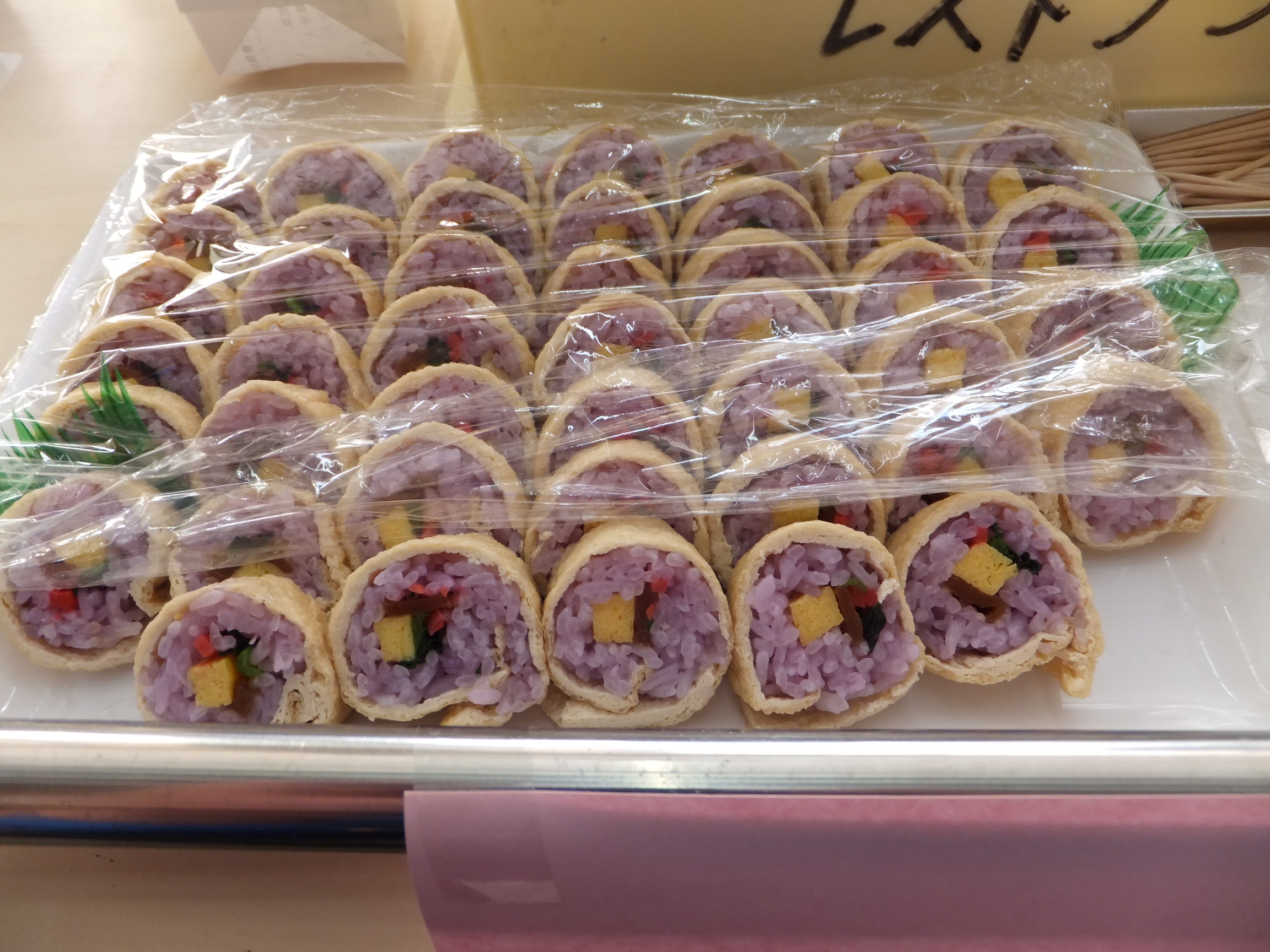 佐比内特産ぶどうジュースを寿司酢として使用。油揚げの表面に十字架を変形した「叶」の焼印。佐比内の活性を願い「いのり寿司」と命名。 販売価格:1パック 大300円、小200円(金山ロールとセット) 主な販売先:紫波ふる里センター、レストラン「ぶどうの樹」 不定期、予約販売